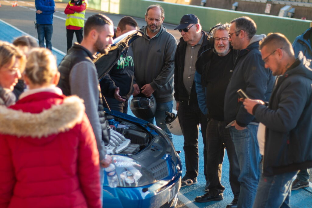 La jauge de 60 voitures pour cette journée est parfaite pour la qualité du roulage en toute sécurité. 30 d’entre elles peuvent rouler simultanément mais très rapidement le brassage se fait et nous constatons à plusieurs reprises à peine une vingtaine de participants qui évoluent sur le circuit.