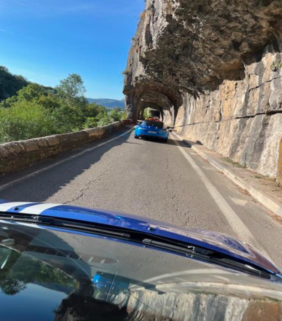 Rendez-vous est donc donné pour le petit-déjeuner à 7h30. Et à 9h00, c’est un convoi de 14 voitures, conduit par Guy et Fabrice, qui prend la route, impatient de découvrir ce département de l’Ardèche, cette région du Vivarais…..
