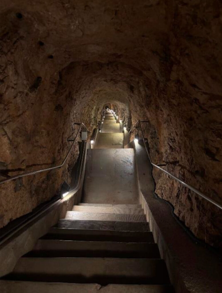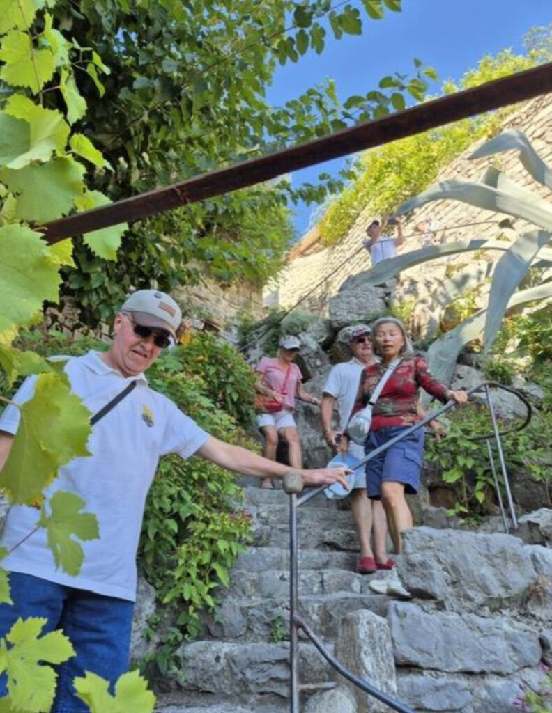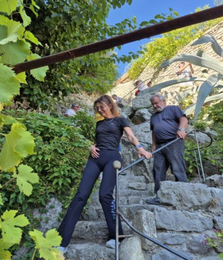 Puis, c’est la pause repas au restaurant « les Stalagmites » sous une tonnelle de verdure avant de regagner à pied l’entrée du site « L’Aven d’Orgnac »…. Le ton est donné : 700 marches pour descendre au fond de la grotte qu’il faudra remonter…. en ascenseur (ouf !!!).