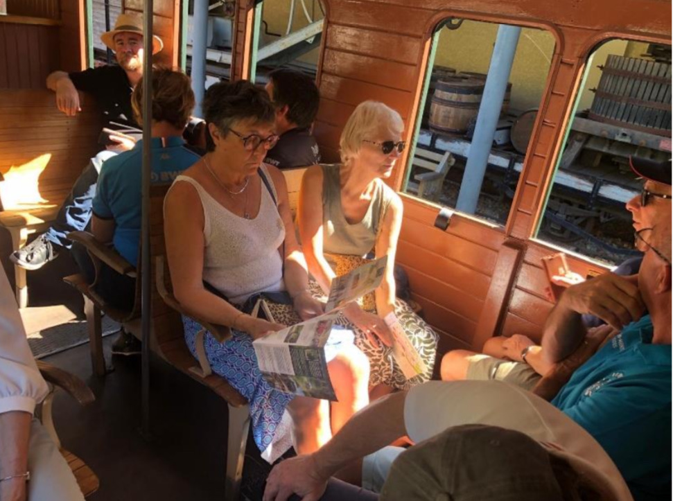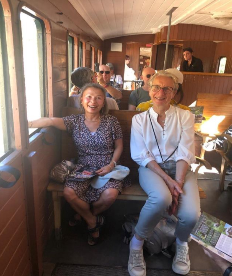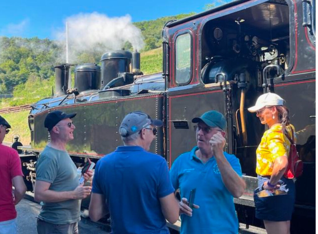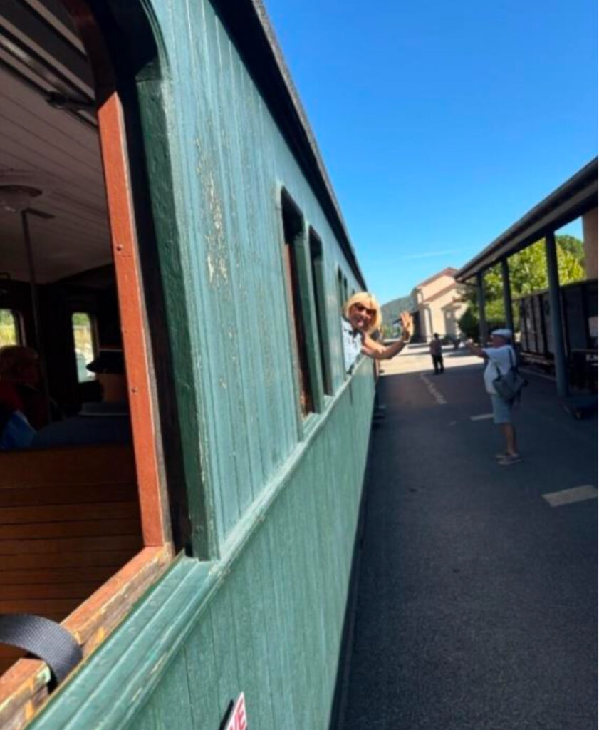 C’est en effet à bord d’un train que nous allons continuer notre balade !!!….mais pas n’importe lequel : le train de l’Ardèche qui, à flanc de falaise, va nous emmener, au rythme de l’échappement de la vapeur et des sifflets de la locomotive, tout au long des Gorges du Doux…