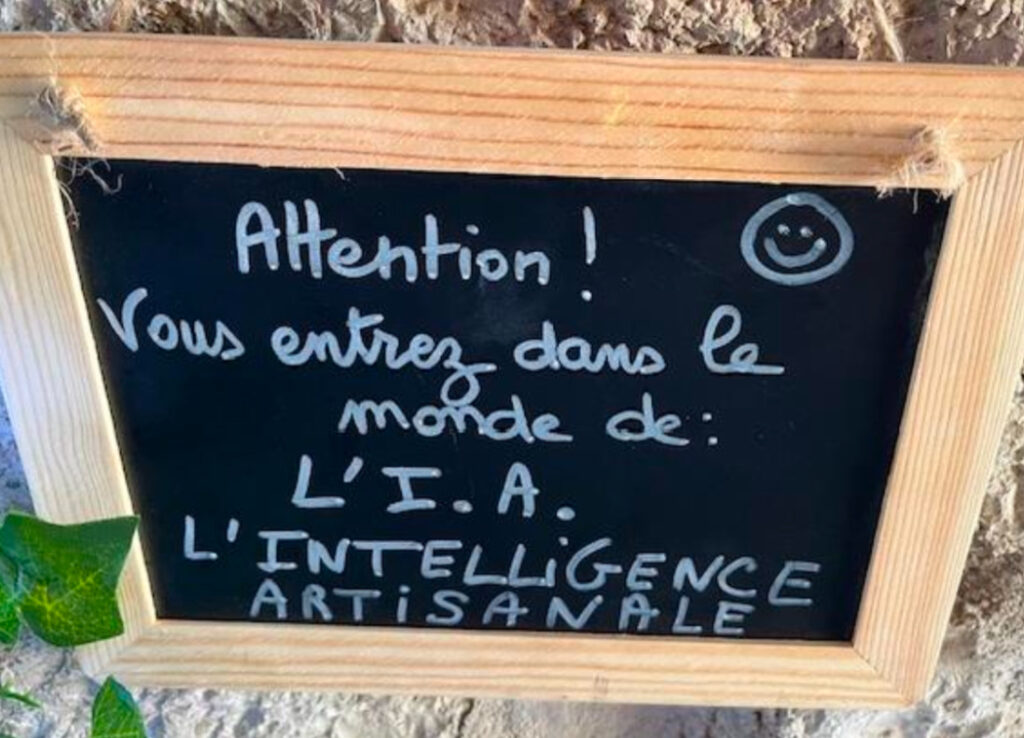 Dans ce village où se succèdent de nombreux ateliers artisanaux, qu’il est bon de lire cette petite ardoise !!! Une I.A. qui dégage un savoir-faire inégalable et qui, au lieu de faire peur, nous émerveille….