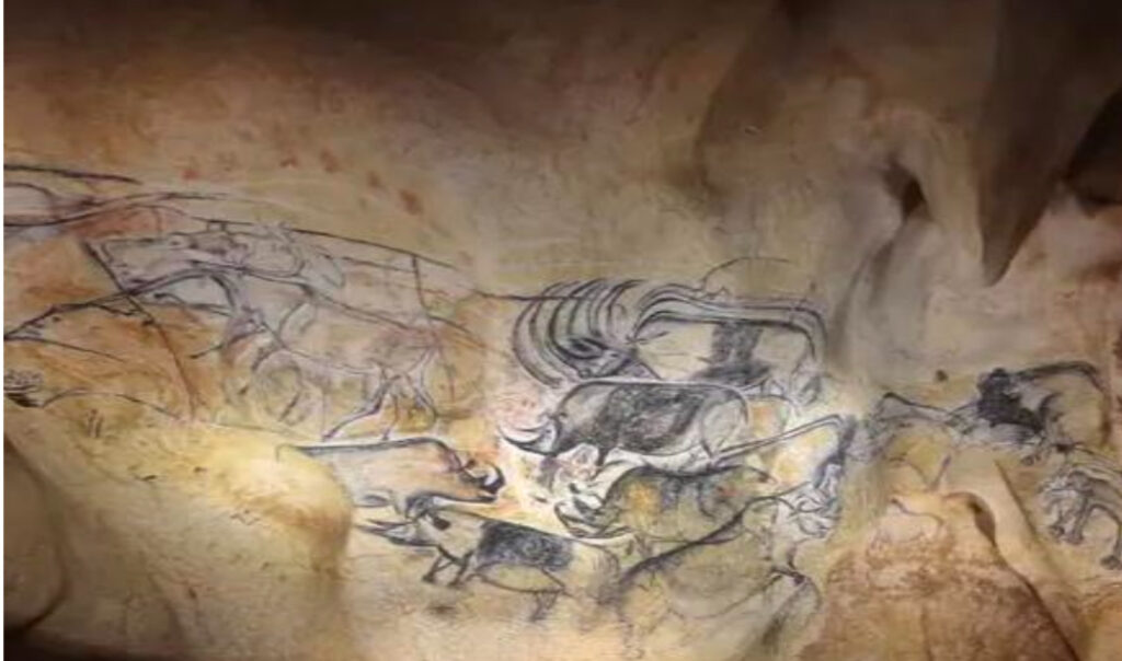 Notre déambulation, sur une passerelle, nous permet de découvrir, peints à l’ocre rouge ou gravé au silex ou encore tracé au doigt, des ours, des bisons, des lions mais encore des mains et quelquefois des dessins dont l’interprétation nous laisse plus dubitatifs (que nous ne publierons pas mais que certains vont, dans leur mémoire, savoir retrouver!!!!…. N’est-ce pas Roxane ???).